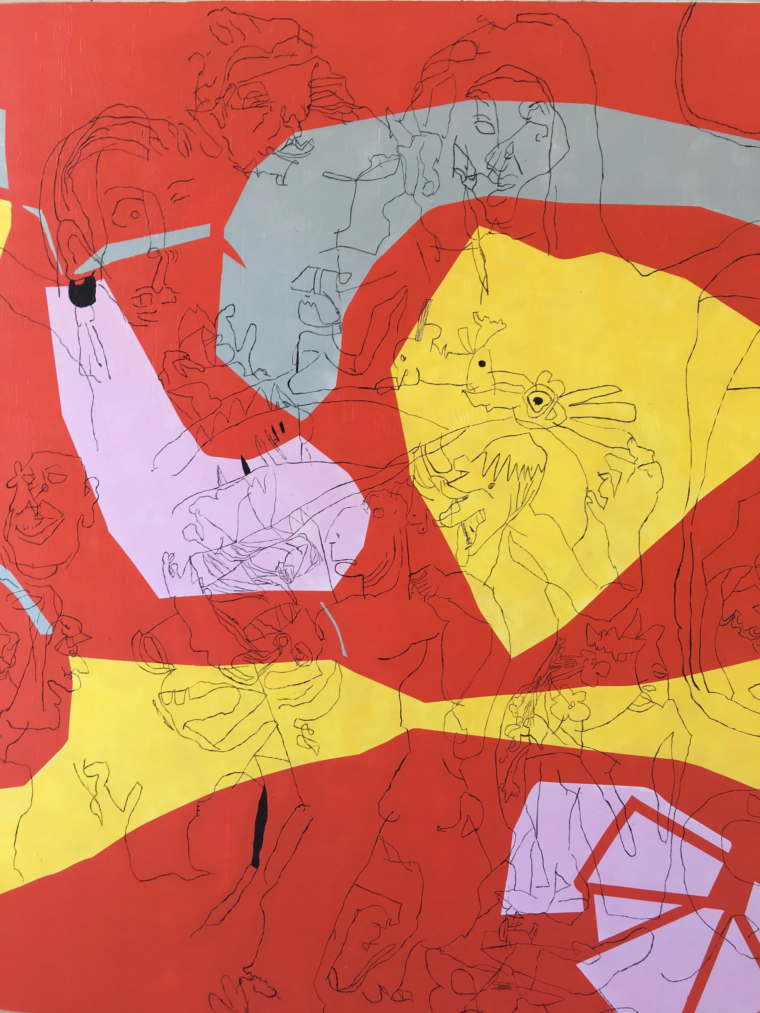 NOEN SKAL SE KROPPEN MIN NÅR JEG ER BORTE/ OLJE OG PASTELL PÅ HØYSTRYKKSPAPIR, 78X212CM/ FOTO: HÅKON SANDMO KARLSEN